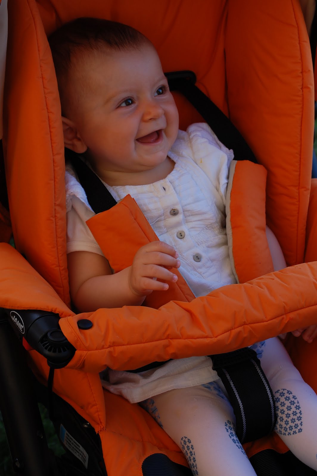 Egy étkezés a következőkből áll: kb. 1,5-2 dl zöldségpüré (sárgarépa, cukkini szinte mindig van benne), kb. 40 g hús vagy hal (hal hetente egyszer), 2 tk. Parmigiano vagy Grana, 1 tk. olívaolaj, és 2-3 ek. búzadara/rizs/tápióka/kukoricapehely. Itt nem divat gyümölcsöt külön étkezés alkalmával kínálni a babáknak, általában azt javasolják, hogy adjuk ebéd után, mintegy desszertként, de Anna egyelőre köszöni de ebéd után nem kér, hanem inkább két étkezés között eszik egy-egy nagyobb adagot (pl. fél alma + 1 barack + 2 babakeksz). Apropó, babakeksz. Hogy ez mekkora butaság! Épp itt az ideje, hogy nekiálljak kekszet sütni Annának. Valami tojásmentes receptnek mindjárt utána is nézek, vettem rizslisztet is, kukoricaliszt pedig mindig van itthon.