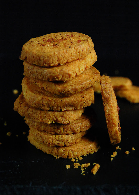 A tésztát folpackba csomagoltam, és 30 percre hűtőbe tettem, majd kivettem, 2-3 mm vékonyra nyújtottam, pogácsaszaggatóval kiszaggattam. A tésztakorongok felére egy valamivel kisebb átmérőjű poharat enyhén rányomtam és a korongok közepére szívószállal négy-négy lyukat szúrtam. A lyukas és a sima korongokat is sütőpapírral bélelt tepsibe raktam, és 180 fokra előmelegített sütőben kb. 10 perc alatt készre sütöttem (a képen lévőket kissé túl…a tésztának elvileg nem lenne szabad megbarnulni).