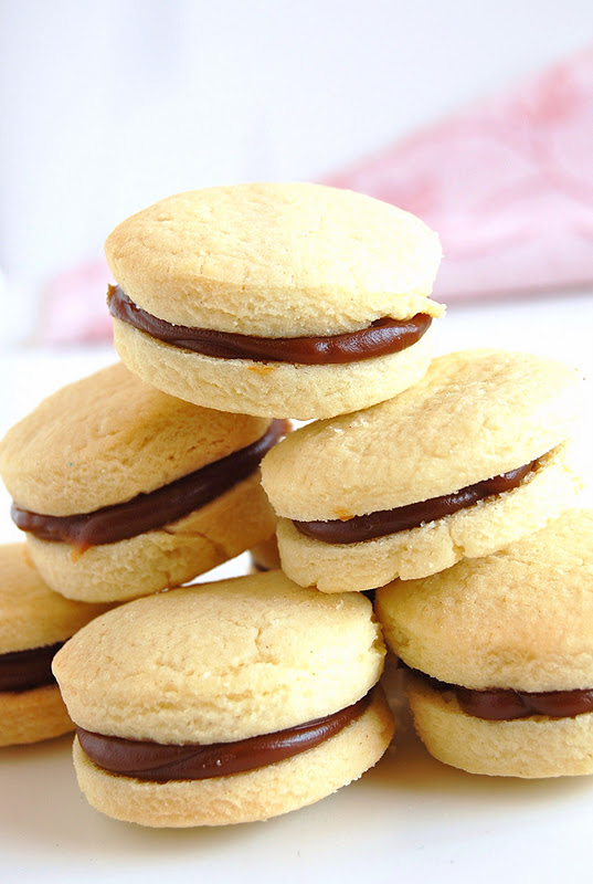 120 g sima liszt, 1 tk. sütőpor, 1 kk. szódabikarbóna, csipetnyi só, kb. 150 g dulce de leche a töltelékhez