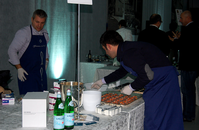 Jöttünk-mentünk még egy darabig, egyre izgalamasabb lett a látvány, a berendezés, a hangulat. A gyárépületet két részre osztották, az egyikben az „ízek kézművesei” („gli artigiani del gusto”) a másikban az éttermek és a bortermelők helyezkedtek el. A kézművesek előételekkel, desszertekkel, fagylalttal és pálinkákkal készültek, az éttermek három kóstoló fogással, (két főétellel és egy desszerttel), a bortermelők pedig az éttermek által készített ételekhez illő borokkal.